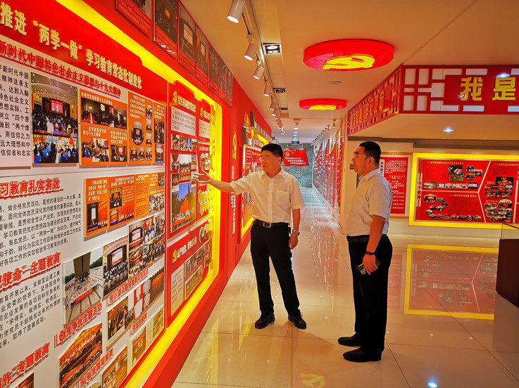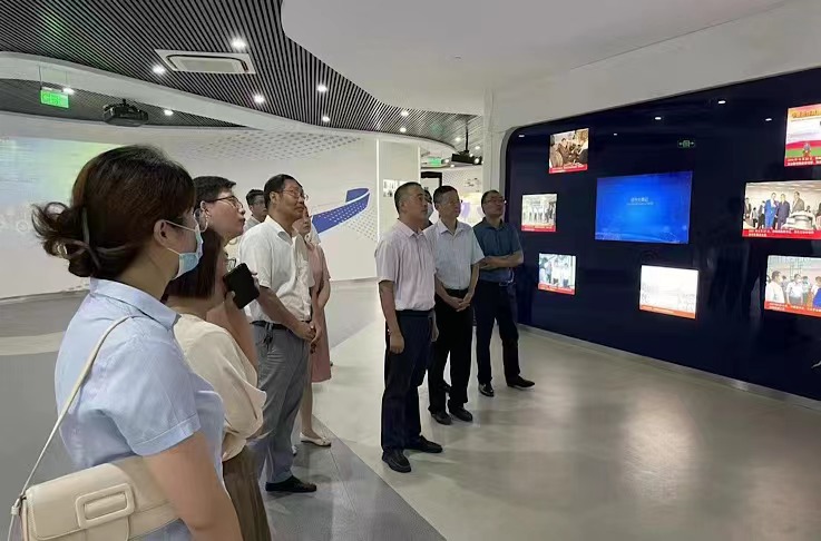 走访中,在公司副总经理、工会主席白江文,人力资源部主任夏长银等人的陪同下,蔡国军一行参观了企业展厅,了解公司发展历史、特色文化理念、业务范围、重点工程项目、公司荣誉等情况。