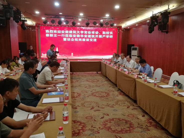 8月22日,校党委常委、副校长蔡新立率队赴安徽华安建筑安装工程有限公司开展访企拓岗调研和产学研合作活动,学校宣传部、科技处、科技成果转化中心、就业处、保卫处、环能学院、经管学院等单位负责同志参加了调研。安徽华安建筑公司董事长成国平、总经理阮洪章携公司中层以上管理人员参加座谈交流。