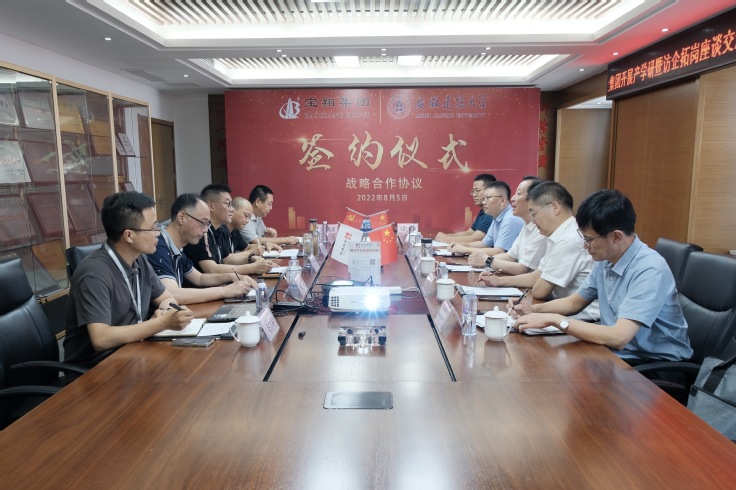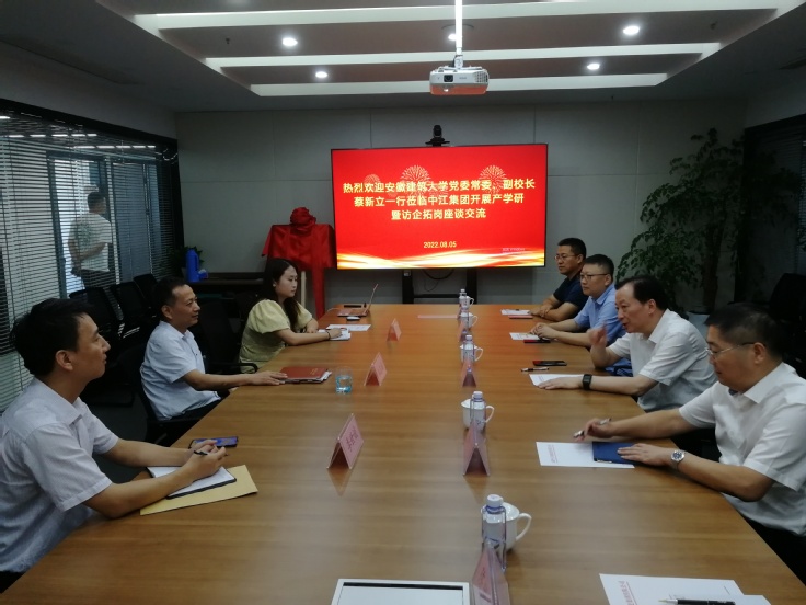 8月5日,校党委常委、副校长蔡新立带队赴安徽中江城建集团有限公司开展访企拓岗促就业和产学研合作活动。学校科技处、科技成果转化中心、节能研究院、经管学院负责人参加活动。中江城建集团董事长朱志福携公司高管热情接待蔡新立一行,双方就人才培养、校企全面深入合作进行了座谈交流。