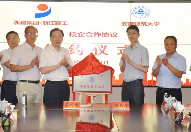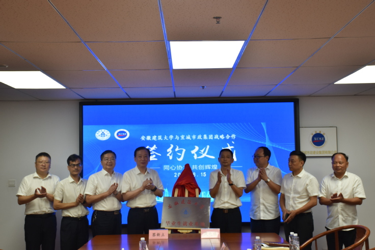 8月8日,学校与中旭建设集团与签署战略合作协议并举行毕业生就业基地揭牌仪式。校党委常委、副校长蔡新立率宣传部、科技处(产学研合作办公室)、科技成果转化中心等部门负责人参加签约揭牌仪式。中旭建设集团党委书记、董事长张旭东等公司领导参加。