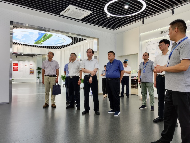邓帮武陪同蔡新立一行参观了公司党支部党建与思想政治教育展示厅、智慧水务科技馆和水泵智能化生产线。