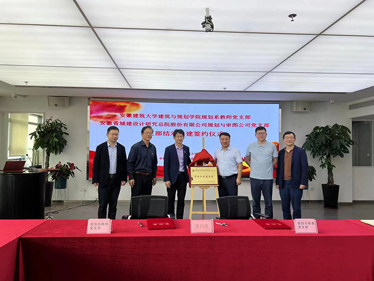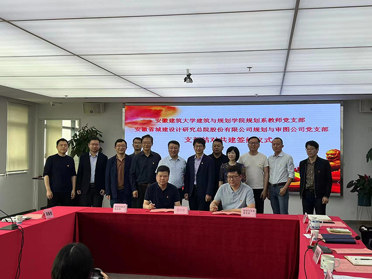 会议最后,建规学院规划系教师党支部、安徽城建总院规划与审图公司党支部汇报了各自党支部党建工作情况,校企双方共同见证了党支部结对共建签约仪式。后期双方将以支部共建为契机,围绕人才联合培养、科研合作攻关等方面继续推进深化合作交流。