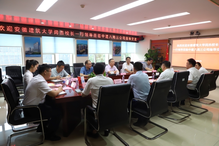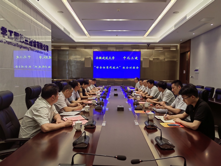 5月23日下午,校党委常委、副校长蔡新立带领就业处、科技处、科技成果转化中心、经管学院、环能学院相关负责人赴安徽华筑建设工程有限公司开展访企拓岗促就业活动,华筑公司董事长李跃辉、副总经理王玉参加座谈交流。