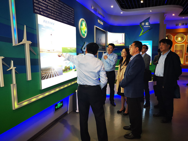 在阳光新能源,闵杰一行参观了新能源展厅,深入了解了光伏、风电、风光储氢充多能融合等领域相关前沿科技。