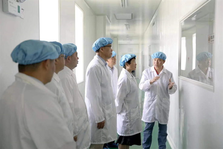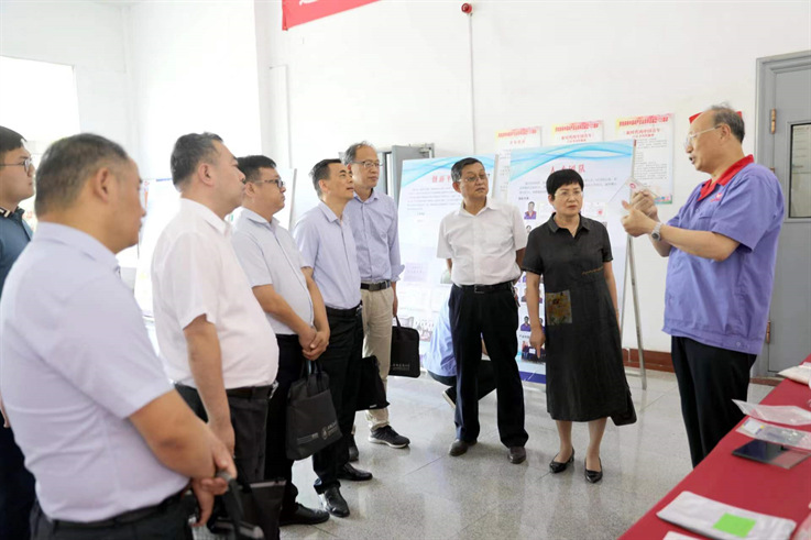 座谈会后,在田丰等陪同下,闵杰一行实地参观了公司实验室,认真听取相关介绍。