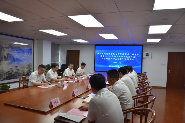 8月19日,校党委常委、副校长张亚新率办公室、组织部工作人员在黄山市住建局党组成员、副局长丁超陪同下,赴黄山市建筑设计研究院走访调研,开展访企拓岗促就业专项活动。