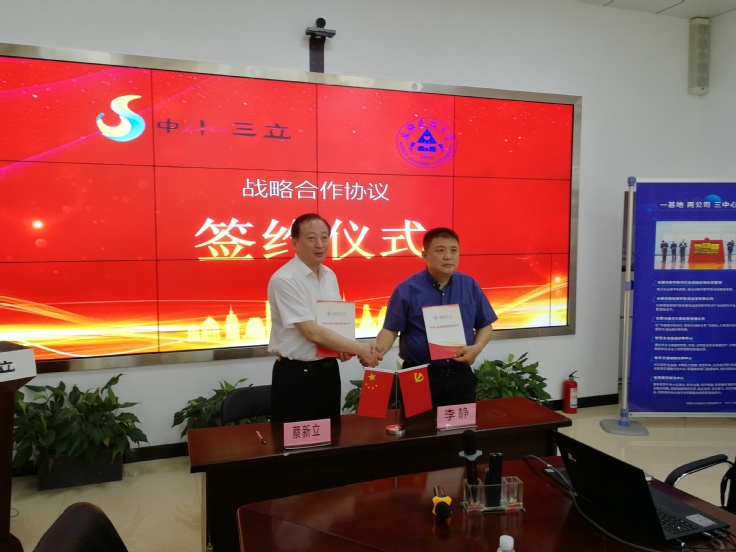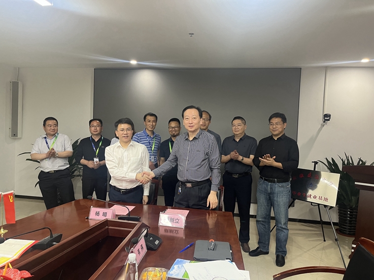 蔡新立和陈硕豪代表校企双方签订了大学生就业实习基地建设协议,共同为“毕业生就业实习基地”“产学研合作基地”“科技成果孵化基地”揭牌。