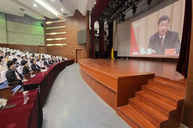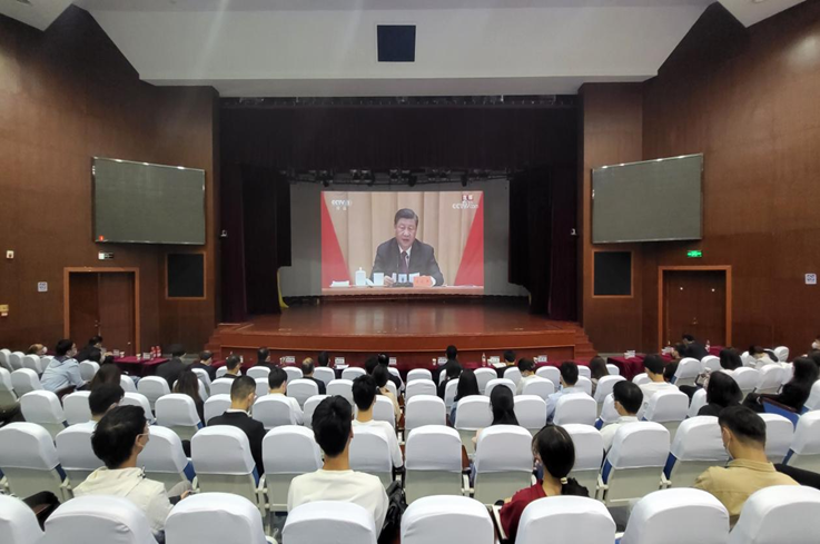 本网讯 5月10日上午,庆祝中国共产主义青年团成立100周年大会在北京人民大会堂隆重举行,中共中央总书记、国家主席、中央军委主席习近平发表重要讲话。校党委书记孙道胜出席,组织部、宣传部、学工部、研工部、人武部负责人,各学院党委书记,校团委委员,校学生会主席团成员,省级“两红两优”获得者,校级“两红两优”获得者代表在南区大学生活动中心报告厅集中观看,各学院安排分会场集中组织本学院团委(总支)委员、学生会主席团成员、优秀团员、团干代表等集中观看。
