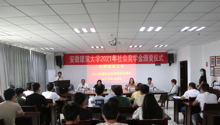 5月18日下午,电信学院在实验综合楼1106会议室举行2021年度社会奖学金颁奖仪式,校党委常委、副校长闵杰,安徽省通源环境节能股份有限公司党总支书记、管理中心行政总监、监事会主席张娜,安徽省通源环境节能股份有限公司办公室主任丁彦,校学工部副部长、学生处副处长,校友工作处副处长参加了仪式,电信学院班子成员、全体辅导员和获奖学生参加了大会。