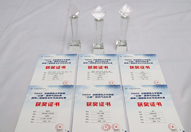 通过评审,电信学院获得教工组、学生组八段锦集体项目一等奖,电信-数理联队获得学生组五禽戏集体项目一等奖,机关二党委陈欣获得教工组八段锦女子个人项目一等奖,环能学院方俊、土木学院欧博洋获得学生组八段锦男子个人项目一等奖,外国语学院吴书、童英喆获得学生组八段锦女子个人项目一等奖,机电学院顾梦凡获得学生组五禽戏男子个人项目一等奖。