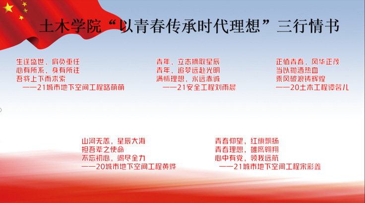 学院开展“以青春传承时代理想”三行情书、“新入团团员集体诵读‘习近平与大学生朋友们’”、“‘悦’读经典,‘疫’路书香”征文、“‘青’音传史,‘易’心向党”配音等活动,通过读原著、学原文、悟原理,选取经典红色电影片段配音等,引导新时代大学生在新时期不忘初心,以文化提升素养、以知识开拓视野,从而培养浓厚的文化气息。