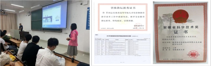 党支部坚持立德树人,统筹教育教学与科技服务工作,教育教学、科研创新和社会服务相互结合、相互促进。支部组织党员教师强化理论学习、提升理论水平,激发开拓进取精神,提高科研创新能力和教育教学水平,助推党员教师担当科研先锋和教学骨干,切实发挥了模范带头作用。教师党员吴东升获批国家自然科学基金面上项目1项,颜普、胡玉霞获批国家自然科学基金青年项目2项;吴东升、汪莉丽获批省级重大教研项目2项;电子信息工程专业教学团队获批省级教学团队;邵慧同志获得2020年度“优秀科研工作者”称号,徐荃同志获得2020年度省级“教坛新秀”称号;颜普同志和邵慧同志获得2020年安徽省科技进步奖三等奖各1项。党支部充分发挥专业导师、任课教师和辅导员的作用,着力提高学生培养质量,电子信息工程专业、通信工程专业就业率和就业质量逐年提升,考研率连续多年位居学院第一,其中电子信息工程专业考研率达到30%以上。