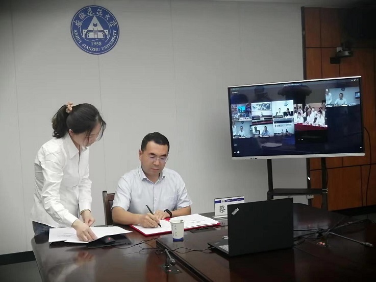 本网讯 6月1日,校党委常委、副校长蔡国军代表学校与安徽新华发行集团举行战略合作云签约仪式。