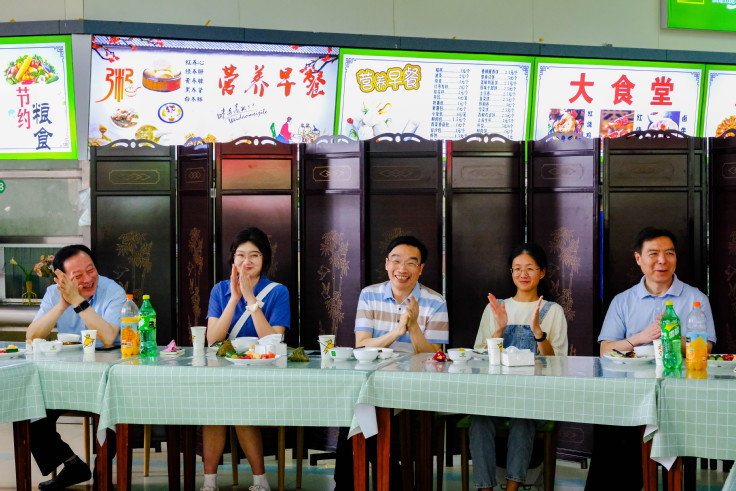 本网讯 为庆祝端午佳节,弘扬中华民族传统文化,让广大师生感受学校关怀,6月3日,校党委书记孙道胜,党委副书记、校长黄显怀,党委常委、副校长蔡新立在北校区教工餐厅,与经管学院和公管学院师生共进午餐、同贺佳节,享受浓浓粽香和温情。校办、学工部、研工部、保卫处、后勤负责人陪同参加。