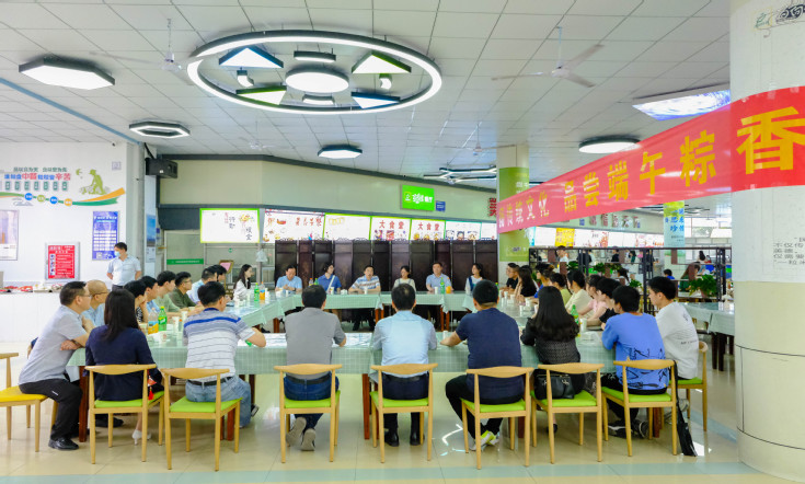 孙道胜代表学校党委向师生表达了端午祝福,勉励同学们坚持文化自信,弘扬中华民族传统文化,增强民族自豪感和爱国主义热情,增强爱国爱校情怀。同时对近期的期末考、毕业季等工作提出要求,疫情下校园管理“解封不解防”,有序做好各项工作,保证学生安全和校园平稳。淡淡粽叶香,浓浓故乡情,同学们对能与校领导面对面就餐和交流感到十分欣喜,同学们积极发言,表达感激之情和感动之心。
