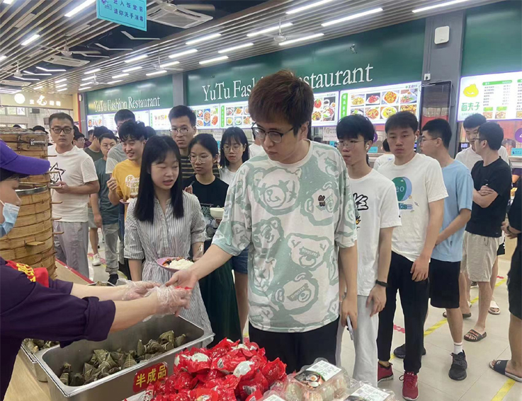 端午节当天,学校各食堂在这个喜悦的日子里,为师生们送来了满满的祝福,凡当日早上、中午在食堂就餐的师生可免费领取一个粽子和一个咸鸭蛋。各食堂设置专门窗口和位置分发粽子和咸鸭蛋,领取现场秩序井然,师生们笑容满面,节日氛围浓厚。