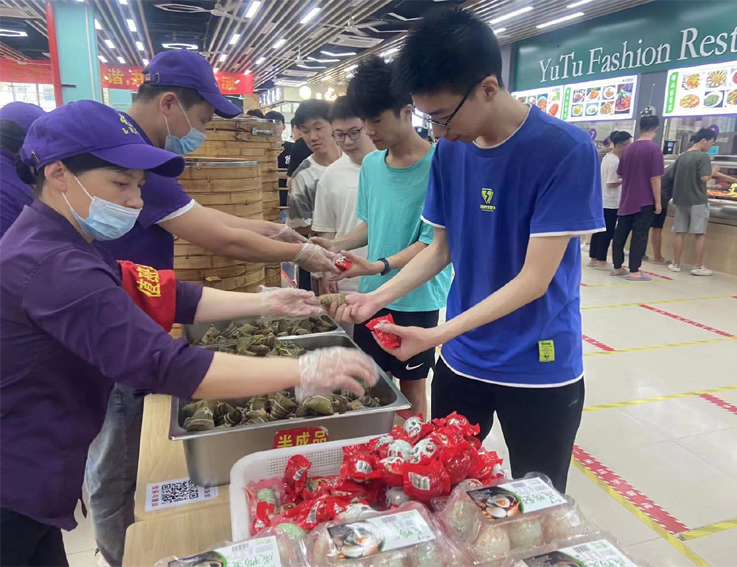 6月1日下午,南校区南苑餐厅A区、D区食堂,紫云餐厅二楼食堂,北校区北园餐厅一楼食堂组织开展了学生包粽子活动。本着卫生、营养的原则,学校食堂精心选配食材,同学们在食堂阿姨们的指导演示下,全程佩戴卫生帽、口罩,体验各种包粽子的方法。学校是传承中华优秀传统文化的重要场地,是培养德智体美劳全面发展的时代新人的主阵地。通过实际操作、亲身体验,同学们在浓浓的粽香和欢乐的笑声中感受中华传统民俗文化的魅力,体验传统节日中所蕴含的意义。