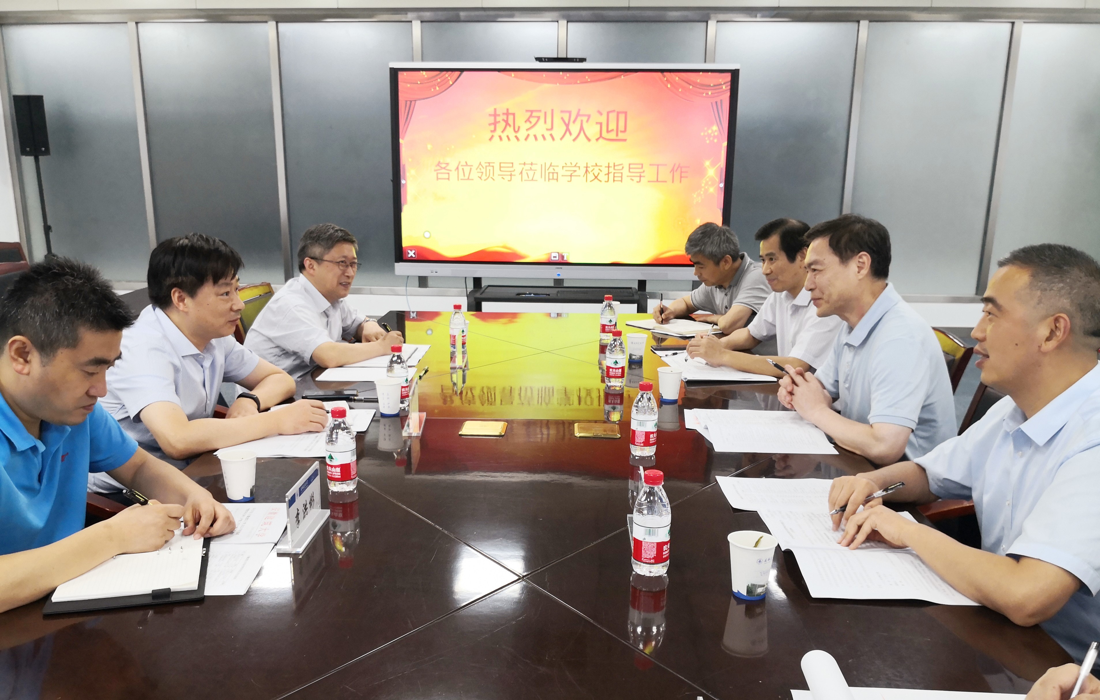 本网讯 6月5日,安徽省教育招生考试院院长沈滔带队来校调研2022年普通高考数学科目网上评卷工作。校党委副书记、校长黄显怀出席并主持调研会,校党委常委、副校长闵杰汇报了学校高考网评准备工作,学校评卷点相关工作组负责人参会。