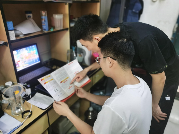 此次征兵宣传志愿者小队每2人分成一组,深入学生宿舍宣传2022年安徽省最新的征兵政策,发放《ku游官方2022年大学生应征入伍指南》,并就指南中的关键政策进行了细致解释。还同有兴趣入伍的学生进行了一对一深入交流,进一步讲清讲实大学生入伍优惠政策和要求,帮助意向学生做好入伍前体检准备和干预措施,鼓励同学们投身军营实现青春价值。