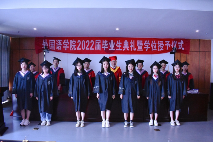 本网讯 耕耘春时雨,丰收夏至间。6月8日下午,外国语学院2022届毕业生毕业典礼暨学位授予仪式在实验综合楼第一会议室隆重举行。校党委副书记、校长黄显怀出席了活动,外国语学院党政,教师和辅导员代表,2022届毕业生和其他年级学生代表参加了仪式。