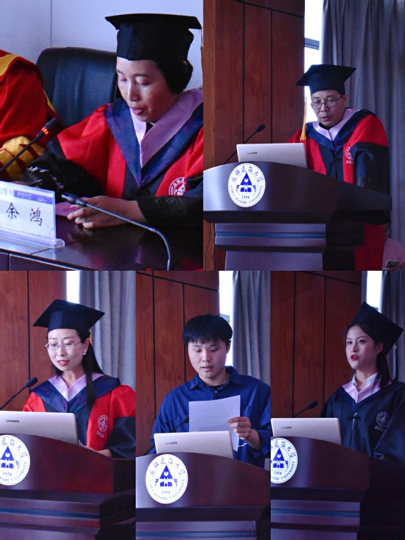 学院院长希望毕业生们志存高远、勇于创新、勤学慎思、脚踏实地、为校争光;教师代表靳宁鼓励学生们离校后坚持终身学习的信仰,追求热爱和梦想;2019级何梦军代表在校学生向毕业生们送上了祝福;2018级杨茜代表毕业生向母校和学院表达了不舍和祝福。