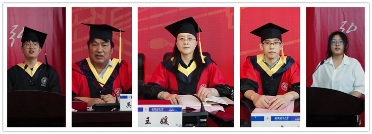毕业典礼在庄严的国歌声中拉开帷幕。2018级道路桥梁与渡河工程专业张益伟同学作为毕业生代表回顾了在建大的四载记忆,对母校和老师的精心栽培和悉心教导表示感谢。2020级土木工程专业赵培芸同学代表全院同学对学长学姐们致以诚挚的祝福与美好的祝愿。