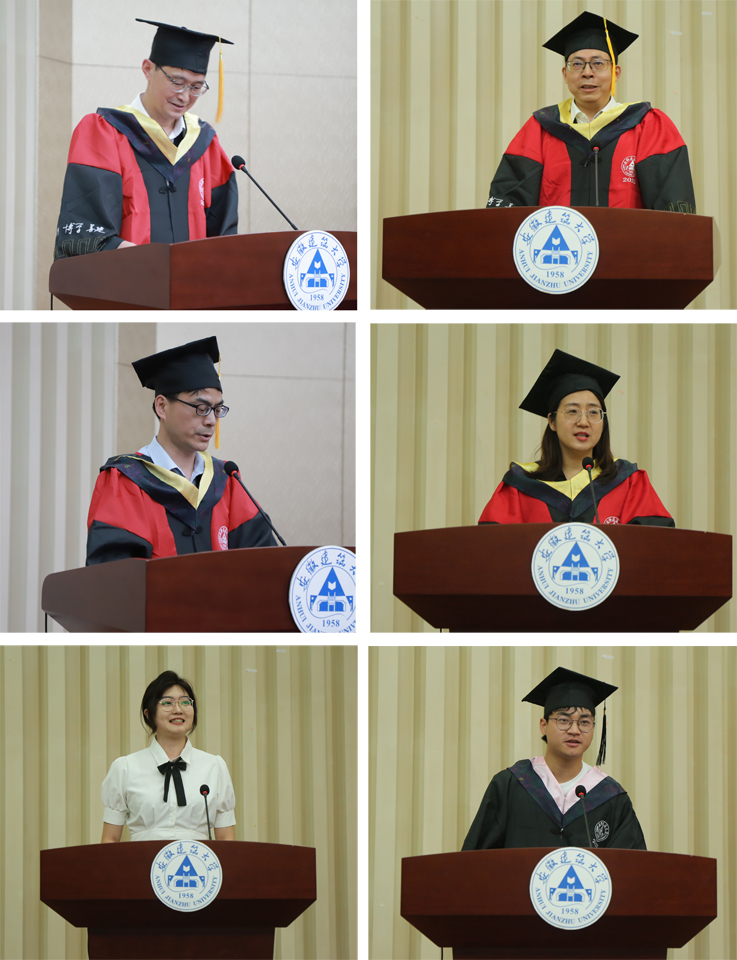 学院教师代表结合自己在建大求学的经历,与同学们分享青春的珍贵记忆,希望同学们把脚踩实、把腰挺直、昂起头颅,共同谱写“请党放心,强国有我”的青春誓言;在校生代表2020级会计学林佳倩同学致欢送辞,她对学长学姐们能够以优异的成绩顺利毕业表示热烈的祝贺,愿学长学姐们跳破荆棘、跨越山海,用青春和智慧续写辉煌的篇章;毕业生代表康陈致答谢辞,他饱含深情地回忆了在建大四年的点滴生活,感恩母校、老师及同学的培养与陪伴,日后一定以建大人特有的姿态,投身社会、服务社会、回报社会。