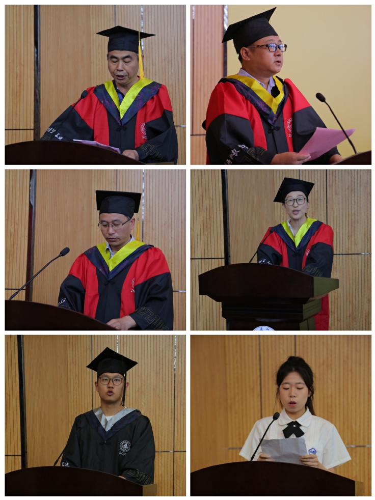 数理学院院长致辞,他向圆满完成学业的同学们表示热烈的祝贺同时希望大家要珍惜青春年华,不忘校园中的酸甜苦辣;进入社会要不懈奋斗,直面困难与挑战,青春是用来奋斗的,青春因奋斗而美丽;在未来的生活中要有担当,敢于面对人生低谷与挫折,脚踏实地、充满自信、微笑面对未来。