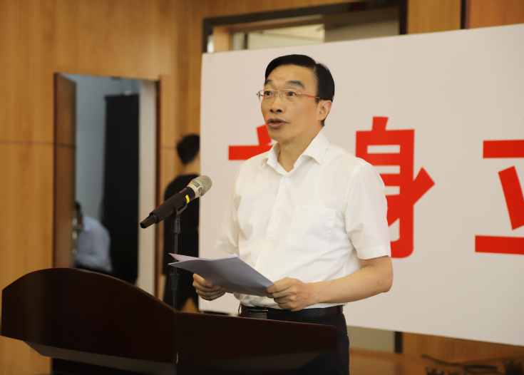 校党委书记孙道胜致词。孙道胜回顾了十八大以来习近平总书记关于教育的重要论述,全国教育大会精神和学校思想政治理论课教师座谈会精神以及习近平总书记考察中国人民大学重要讲话精神。习近平总书记从党和国家事业发展的全局出发,深刻阐述了高校思政政治工作的重大意义,深刻分析了教师的关键作用,明确提出了推动课程思政改革创新的重大要求,为我们推进课程思政建设指明了前进方向,提供了根本遵循。学校一直高度重视课程思政建设,将从加强顶层设计完善管理体系、强化学习培训提升教师队伍建设、深化教学改革有效提升建设水平三个方面继续推进课程思政建设与改革,真正做到“为党育人、为国育才”。这次比赛是学校突出教学中心地位,以本为本、四个回归,教师是第一资源的生动体现和具体落实。孙道胜预祝进入决赛的12位参赛教师,发挥高水平,赛出精气神。