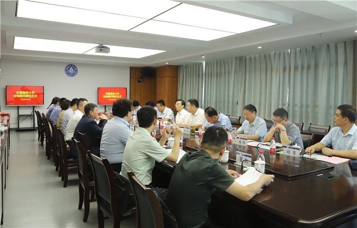 本网讯 为深入推进依法治校,加快法治建大建设步伐,提高学校依法决策能力,6月16日上午,学校在南校区实验综合楼21楼第二会议室举行法律顾问聘任仪式。校党委书记孙道胜出席仪式,上海君悦(合肥)律师事务所等3家法律顾问单位、耿鹏等12名法律顾问、人力资源顾问赵勇和学校相关单位主要负责人参加仪式。