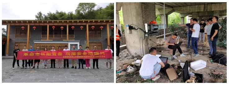 党员教师积极参加乡村振兴、安徽省城市体检、城市生命线安全工程建设等社会工作,服务国家、地方经济社会发展。2021年8月以来,支部党员积极参与桥梁生命线社会服务工作,用脚步丈量江淮大地,先后评估桥梁900余座,为39座桥梁运行监测安全预警系统进行深化设计。