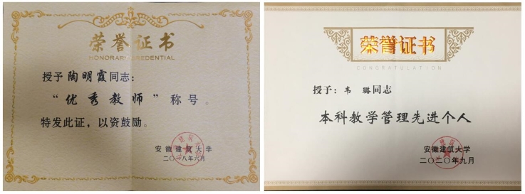 近三年,党员教师积极承担省一流本科人才示范引领基地、省级一流教材等质量工程项目16项,出版教材3部,发表教研论文8篇。支部党员6人次分别获校、学院青年教师课堂教学竞赛一、二、三等奖,周宇两次获得学校课程思政讲课比赛二等奖,陶明霞、何玮获校“优秀教师”称号,韦璐、陶明霞获校“本科教学管理先进个人”、石贤增获校“校工会活动积极分子”荣誉称号。