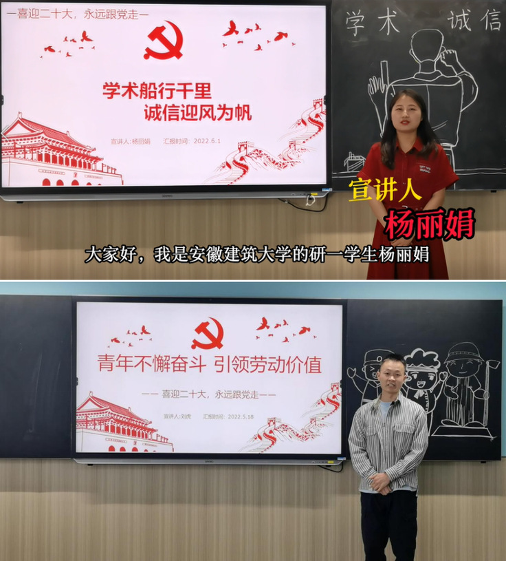 传承红色精神,弘扬传统美德。在党的二十大即将召开之际,恰逢共青团成立一百周年,学院团委召集优秀青年学子,组建“信”青年红色宣讲团,团队紧密结合新时代特色,以青年学子的视角,一月一主题展开宣讲,切身体会和传承红色精神。在第五、六期活动中,通过组织选拔优秀研究生团员加入宣讲团,开展了主题为“学术船行千里,诚信迎风为帆”和“青年不懈奋斗,引领劳动价值”的宣讲活动。在研究生代表们声情并茂的讲述中,让大家真切感受到了“诚信”二字在学术研究和人生发展道路中的重要性。引导研究生将诚信品质融入到生活中,同时培养研究生热爱劳动的品质,弘扬中华民族传统美德。