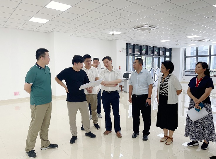 本网讯 7月14日,校党委副书记、校长黄显怀,校党委常委、副校长蔡国军带领资产处、后勤集团、艺术学院、图书馆主要负责人深入图书馆建筑分馆就校园书店项目推进工作展开实地调研,合肥市新华书店负责人及设计人员参加此次调研活动。