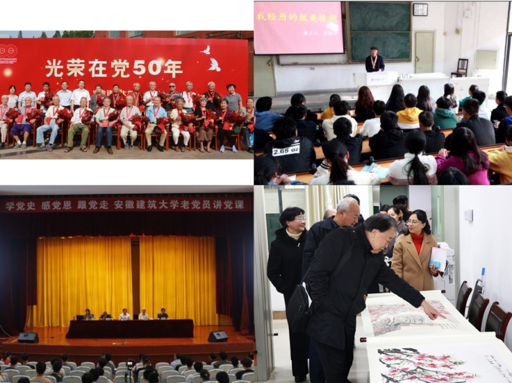 党支部始终注重发挥老同志的政治优势、经验优势和威望优势,通过创新抓党建、带群建、促和谐。鼓励老同志积极利用自身经验优势向校报校刊投稿,传播和弘扬正能量;开展“听‘60、70、80、90’老党员讲党课”活动,退休老党员结合人生经历,与同学们分享革命的故事、英雄的故事、党的故事和学校发展的故事;与学院联合开展以“青蓝衔接绘建大”为主题的书画摄影作品联展暨校史校情文化传承交流会活动,将传承学校精神与校史教育结合起来。同时,支部先后组织开展了“畅谈十八大以来的变化,展望十九大胜利召开”“伟大的祖国”“书写百年美好画卷”等专题活动,通过征文、座谈、宣讲等形式,积极唱响主旋律、传播好声音,产生了良好的反响。组织协办“光荣在党50年”纪念章颁发仪式,为党龄达到50年的老党员颁发纪念章。组织党员参与社会公益活动,在扶贫日活动期间,积极向对口帮扶的汤池村开展扶贫捐款活动。