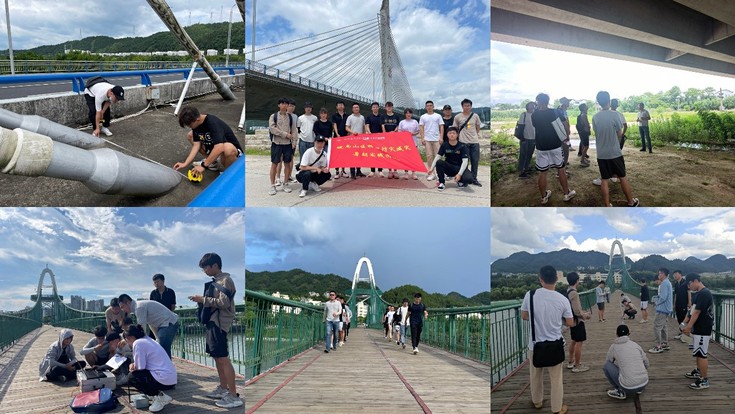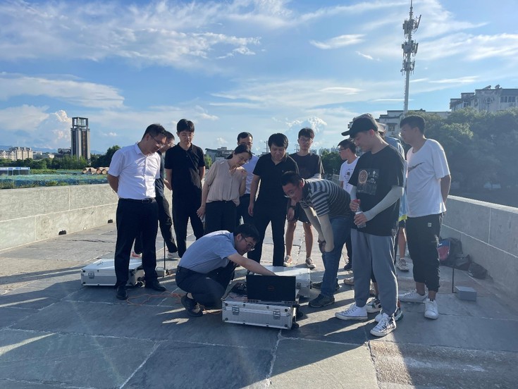 指导老师周宇博士围绕徽州遗产拱桥保护、城市遗产桥梁监测、计算结构力学与桥梁建模等主题为团队研究生现场授课。此外,实践团队针对黄山三座城市既有桥梁,通过各种方式,例如在桥梁上集体齐步走、跑步走等,开展了一系列的几何信息测绘与动力特性识别,所测得基础信息为城市生命线桥梁安全工程深化设计奠定数据基础。