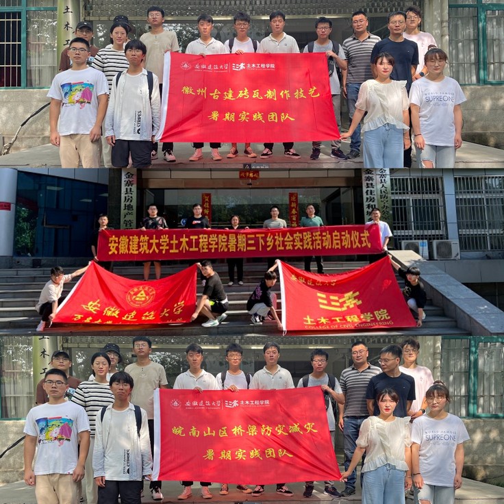 不厚其栋,不能任重;不敬其业,不能任教。新时代、新征程、新使命,土木学院全体教职员工牢记习近平总书记视察安徽时的嘱托,积极响应号召,以更大的决心、更明确的目标、更有力的举措,以暑期“三下乡”社会实践活动为载体,带领学生将科研做在江淮大地上、将论文写在江淮大地上,助力乡村振兴战略实施,为美好安徽建设贡献青春力量!(文/图:范瑾、周宇、张李扬、陈旭东;审核:王媛)