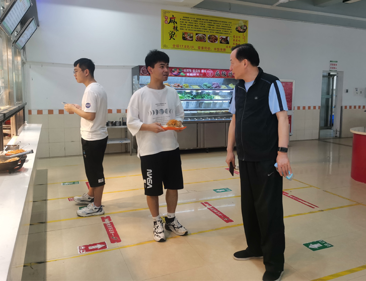 蔡新立查看了南北校区学生宿舍暑期维修改造、南校区体育场照明工程、南园餐厅A区食堂文化餐厅建设等项目施工进展情况,现场听取了后勤服务集团及各施工单位关于工程推进情况的汇报。查看完施工现场,蔡新立深入值班食堂,详细了解食堂运转情况和学生就餐情况,对食堂做的好的地方提出表扬,同时要求食堂经营者要更加高度重视暑期饮食供应保障工作。
