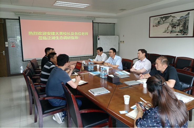 本网讯 7月22日,校党委副书记、校长黄显怀率环能学院相关负责人赴安徽泛湖生态科技股份有限公司开展访企拓岗促就业工作暨产学研合作座谈交流。安徽泛湖生态科技股份有限公司董事长王淦、公司技术骨干参加座谈交流。