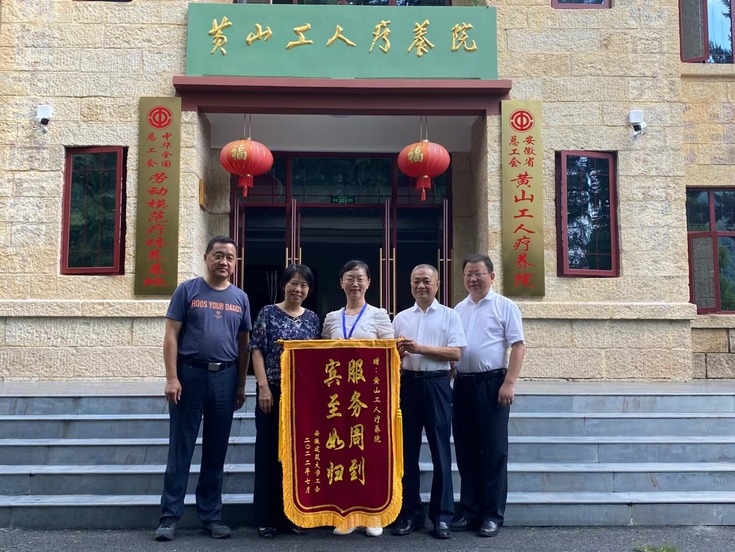 疗休养期间,为感谢黄山工人疗养院的优质服务,学校工会向疗养院赠送了锦旗。(文:金鑫;审稿:胡雯)