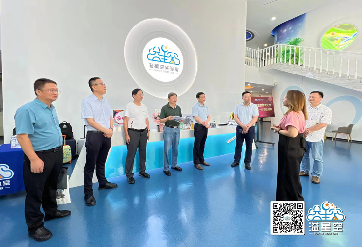 黄显怀一行走访参观校友企业溢星空生命科学中心。听取溢星空生命科学中心创始人、2002级土木工专业校友章飞燕关于中心创建、业务范围、经营情况和经营业绩的介绍。并就中心发展和校企合作进行交流探讨。