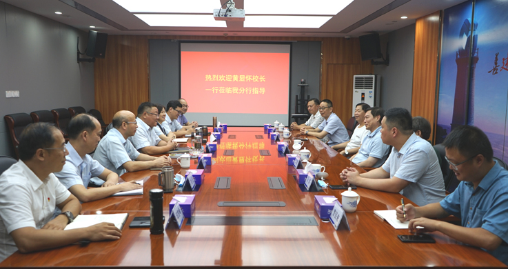 8月1日下午,黄显怀一行应邀赴河源市看望建设银行河源市分行党委书记、行长、90城镇建设专业校友石仁苍,并就校行合作开展和毕业生推荐就业与河源市分行领导班子进行了交流探讨。