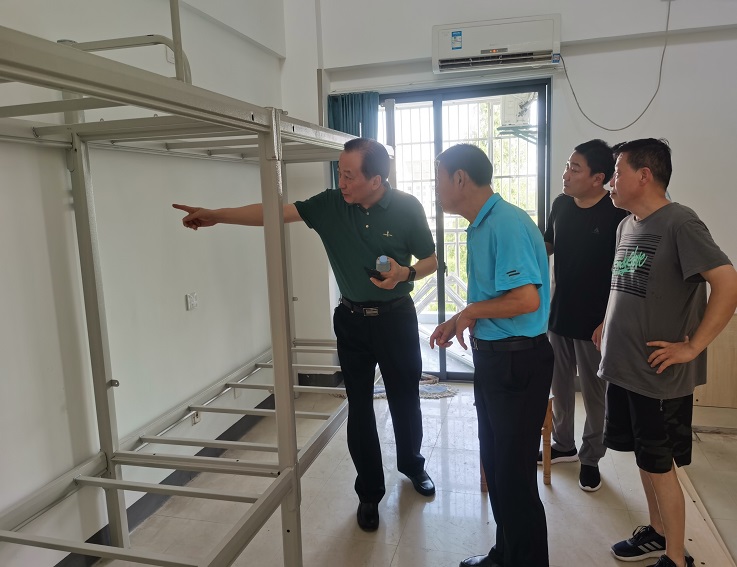 蔡新立实地查看了南北校区4栋学生宿舍维修改造现状,听取了施工单位的工作汇报,了解了公寓床安装进展情况。蔡新立代表学校对施工单位克服常态化疫情防控、连续高温天气等不利影响,有序推进学生宿舍维修改造进度表示充分肯定,并慰问了高温天气下坚守一线的后勤集团工作人员及施工人员。