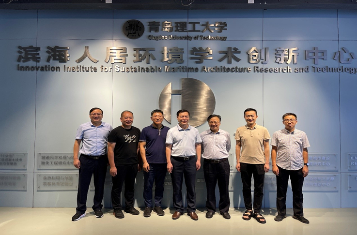 在黄岛校区,黄显怀一行参观了青岛理工大学的新校区建设情况,并与青岛理工大学相关校领导就校区建设、人才引进、学科建设等方面进行了深入交流。在市北校区,黄显怀一行在高伟俊院士陪同下参观了青岛理工大学滨海人居环境学术创新中心展厅、相关研究中心以及建筑馆。