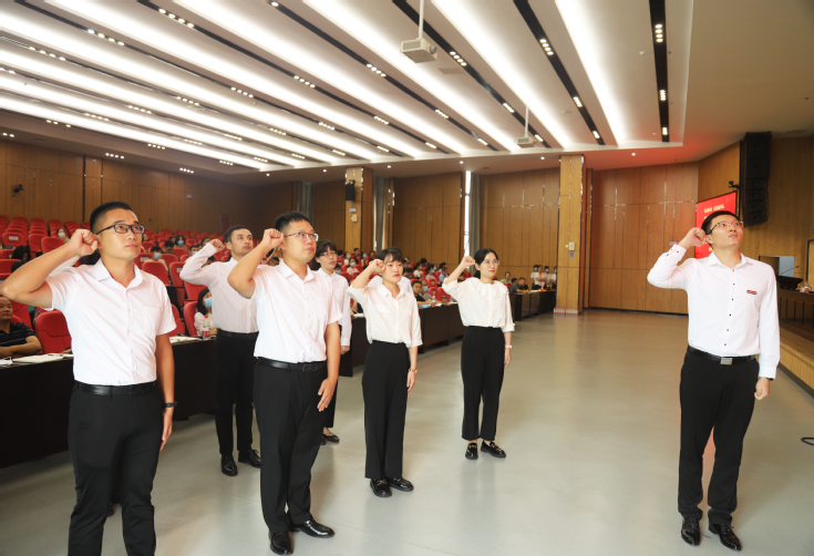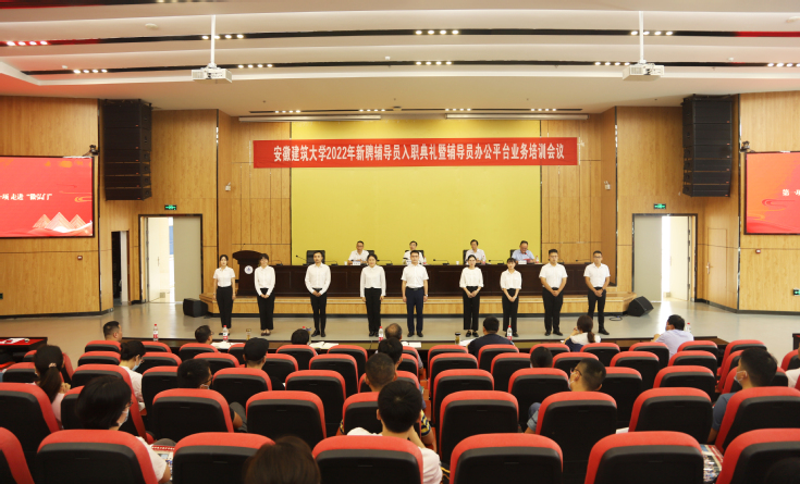 典礼开始前,新聘辅导员依次走进“徽弘门”,步入会场,开启践行立德树人、铸魂育人的新征程。主持人向与会人员逐一介绍了2022年新入职辅导员。优秀辅导员代表王昊禾,带领全体新入职辅导员进行了庄严的入职宣誓,与会人员现场重温了“高校辅导员誓词”,进一步坚定理想信念、不忘初心使命。