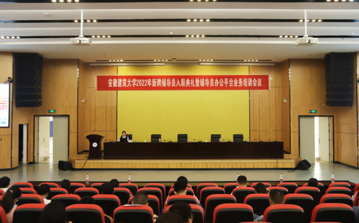 本网讯 为进一步增强辅导员专业技能,夯实工作基础,提升思政育人水平,推动辅导员队伍专业化、职业化发展,8月24日,学校在南校区实验综合楼二楼报告厅举行“2022年新聘辅导员入职典礼暨辅导员办公平台业务培训会议”。校党委书记孙道胜出席并讲话,相关部门负责人,学院分管学生工作书记、全体专兼职辅导员,学工部全体人员参会,会议由学工部负责人主持。