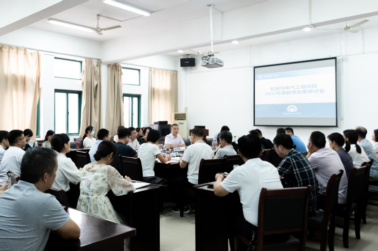 本网讯 为进一步推进工程教育专业认证工作,全面贯彻以学生为中心的教学理念,实现产出导向的教学模式转变,创新人才培养机制,全面提高人才培养质量,机电学院于8月24日下午召开2022年度教学改革研讨会。本次研讨会主题为“工程教育专业认证为契机,推进教学改革”。校党委常委、副校长闵杰,机电学院领导班子成员,机电学院全体教师参加会议,会议由副院长黄磊主持。