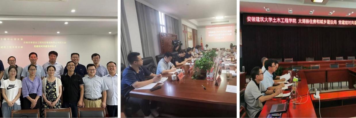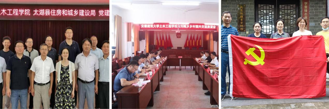 为进一步发挥党建引领作用,提升支部建设水平,暑期土木学院领导班子成员、党委委员、党支部书记代表等共赴太湖县开展党建学习和交流。土木学院调研组一行到太湖县住房和城乡建设局,与太湖县住建局机关党委联合召开中心组(扩大)学习会,同时分别参观安徽京审建设工程项目管理有限公司和安徽宏泰钢结构股份有限公司,进行产学研合作交流座谈会并签订了支部结对共建协议;前往太湖县刘畈乡刘畈村开展乡村振兴研讨交流座谈暨党组织结对共建协议签约活动。通过党建结对共建、产学研合作及乡村振兴调研,有效将土木学院建设与地方发展结合起来,切实提升了校企发展和基层党建水平;此外,土木学院测绘科学与工程系教工党支部赴安徽省合肥市肥东县长临河古镇开展“观吴氏旧居,学测绘将军,庆八一建军”主题党日活动,深入学习吴忠性先生的生平事迹,并借榜样力量强化党建引领学科发展,为培育良才贡献力量。