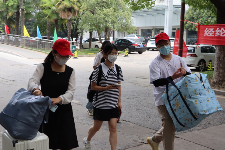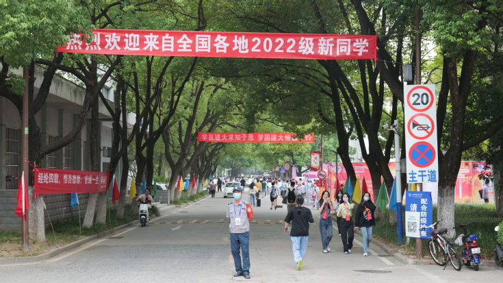 一次次扫码与测温、一声声亲切的鼓励、一句句热情的问候,一双双接过行李的手……以后,建大就是你们温暖的家。