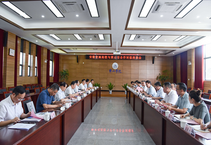 对接座谈会在黄山学院率水校区文昌楼南楼108会议室召开,省委教育工委委员、省教育厅副厅长储常连出席并主持座谈会,黄山市委市政府、安徽中医药大学、合肥学院、合肥师范学院、黄山学院等单位相关人员参与座谈会。本次座谈会主题是“为黄山请贤、为高校引才,共建大美黄山,共享人才红利”。